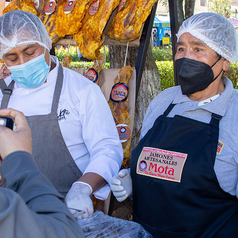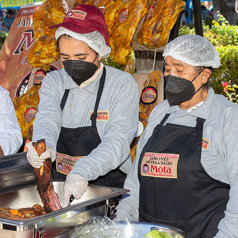Doña Estela Mota inició desde los 17 años junto con su padre, Don Alejandro Mota, que fue quien le enseñó la receta y preparación del Jamón serrano.